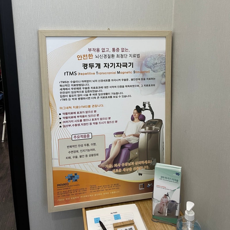 환자가 약물에 반응하지 않거나 약물의 부작용을 견딜 수 없는 경우 전기 TMS 또는 rTMS 치료가 옵션입니다. 자기장은 강하지만 안전하고 통증을 유발하지 않습니다. 비침습적이고 오래 지속되는 효과, 반복적인 경두개 자기 자극 rTMS 10-40분, 피질 흥분성을 조절할 수 있습니다. rTMS는 일반적인 치료에 잘 반응하지 않는 다양한 질병에 대한 새로운 치료법으로 주목받고 있으며, 현재는 잘 반응하지 않는 우울증, 강박장애, 운동장애, 정신분열증, 치매, 뇌기능장애 등에 사용되고 있다. 약물 및 정신 요법뿐만 아니라 치료 응용 프로그램. 활발히 연구 중이다. TMS 치료는 수술이나 마취 없이 뇌의 신경세포를 자극해 우울과 불안을 치료하는 시술이다. 현재 국내 여러 병원에서 시술이 진행되고 있다. 상담을 받는 환자 등 의욕이 없고 지속적으로 우울감을 느끼는 현대인이 늘면서 관련 상담도 늘었다. 우울증은 다른 질병과 마찬가지로 환자 스스로 해결할 수 없기 때문에 정확한 의사의 진료를 받아 진단을 받고 약물치료, 심리치료, TMS치료 등 적절한 치료를 받는 것이 중요합니다.
