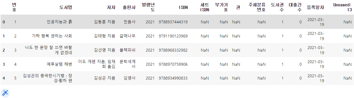 df = pd.read_csv('남산도서관 장서 대출목록 (2023년 03월).csv',encoding='EUC-KR')
