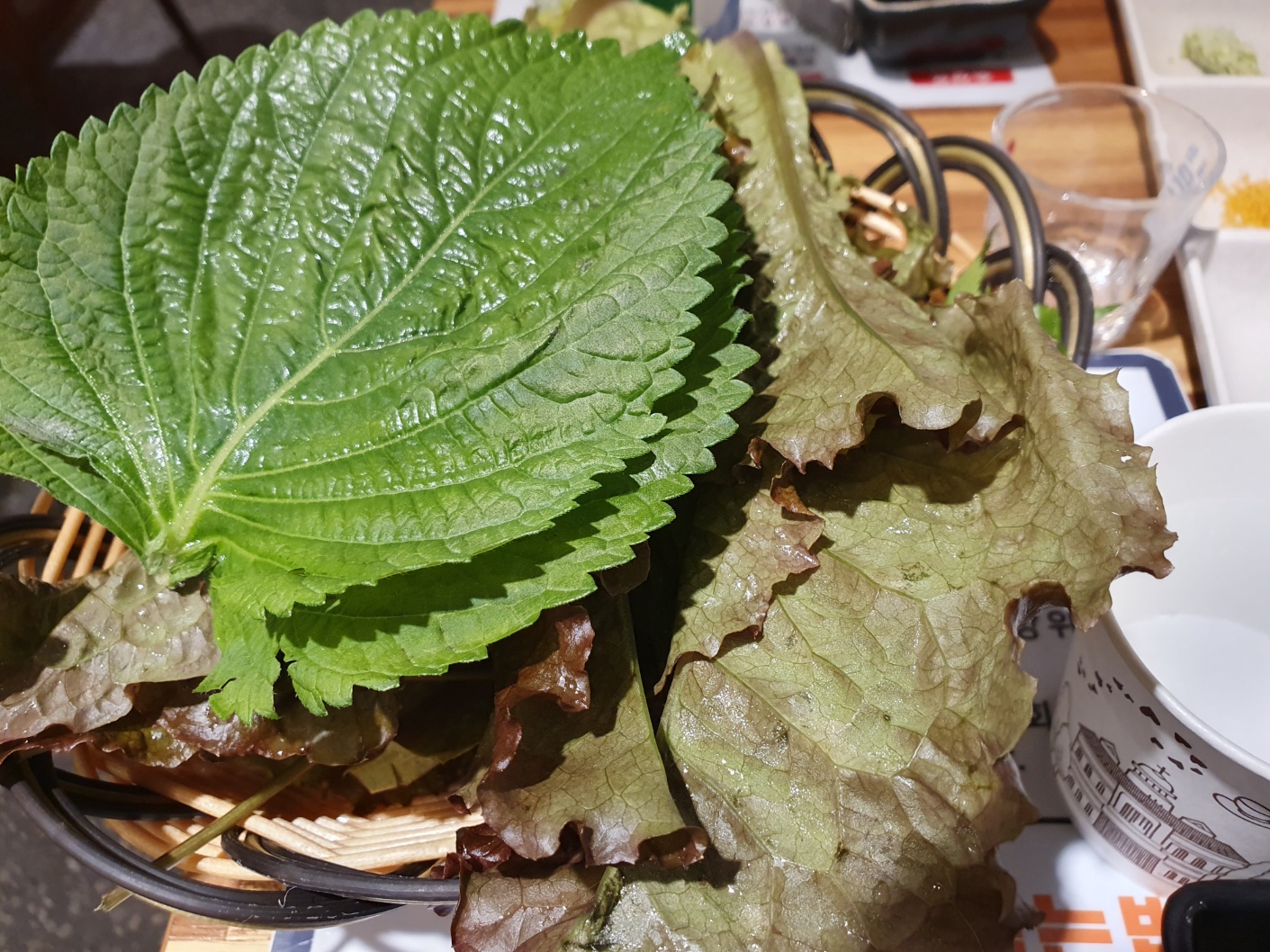 싱싱한 깻잎과 상추 그리고 사진은 못찍었지만 특유의 고수처럼 허브향이 강한 야채가 있었는데 뭔지 기억이 안나네요.