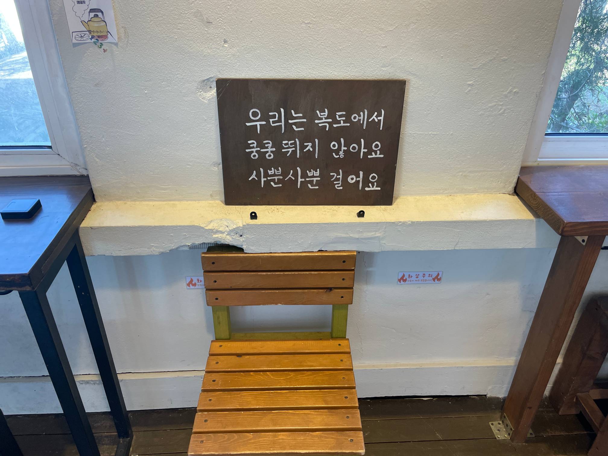 실제로 카페로 사용되는 방은 원래 교실이었고 사람들이 앉아서 식사하는 방도 마찬가지입니다.