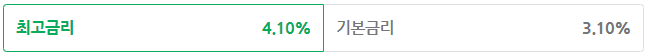 농협 정기예금, NH고향기부예금 우대금리 제공 연 최대 4.10%의 이자율제공합니다. 1,000,000원을 12개월 동안 예치하면 세전 1,040,900원이 적립됩니다.