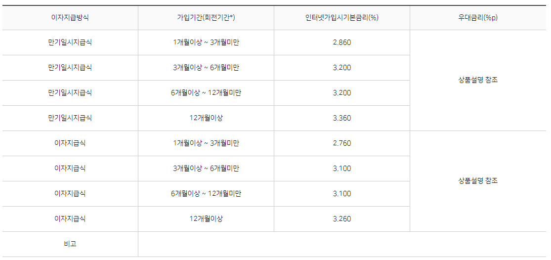 회전기간별 약정이율은 12개월 기준으로 적용되는 기준금리와 회전기간마다 변동하는 실세율을 합산한 것입니다. 회전주기에 따라 금리가 달라지기 때문에 금리가 오를 때 가장 높은 금리를 받을 수 있습니다. 경우에 따라 우대금리를 받을 수 있습니다.