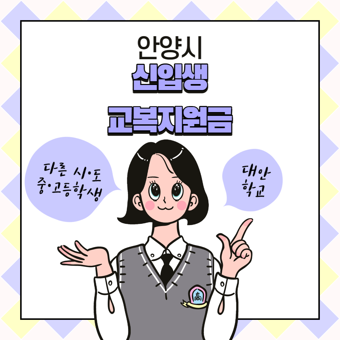 3월 새학기가 시작되면 중·고등학생 학부모에게 교복비 부담을 덜어주기 위해 학교복지지원금을 지급한다. 안양시는 다른 도시의 대안학교와 중고등학교에 재학 중인 신입생의 학교복지 신청을 받고 있다.