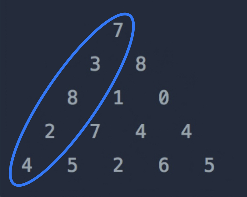 다시 말하지만 위에서 아래로 더할 수 있는 유일한 숫자는 바로 위에 있는 숫자입니다.